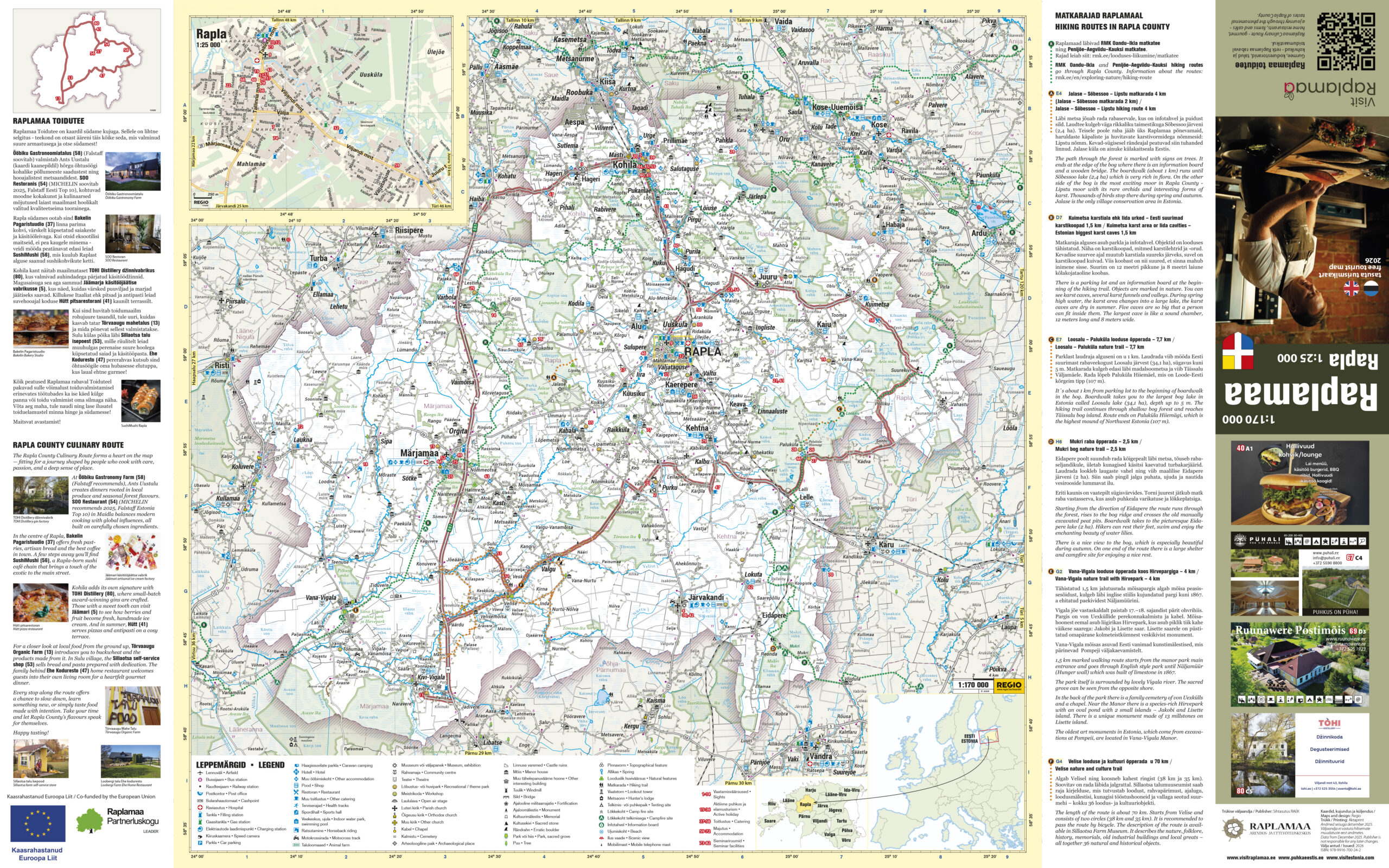 2026. aasta trükisest leiad Raplamaa kaardi, kuhu on märgitud turismiteenuse pakkujad, matkarajad ja Raplamaa toidutee.